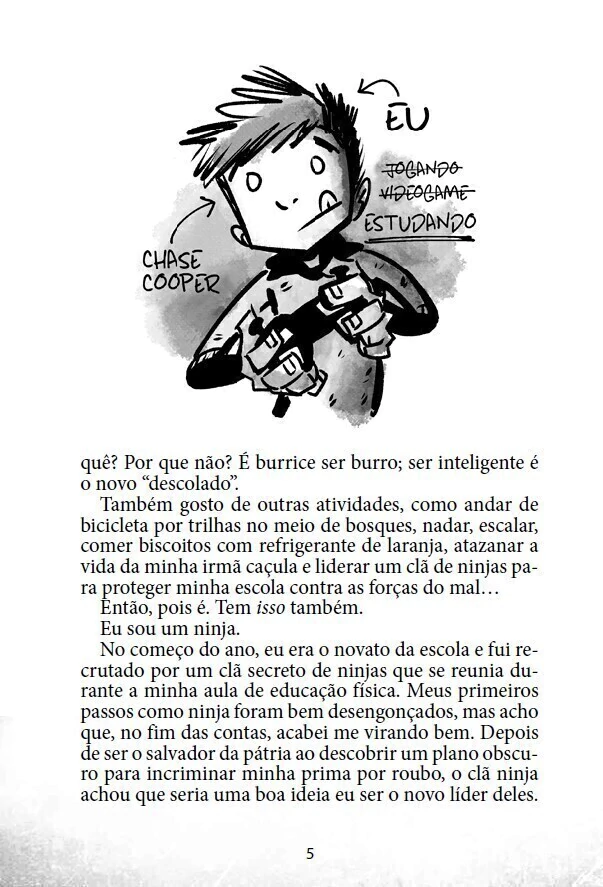Com uma linguagem leve, divertida e cheia de ação, Diário de um Ninja conta a história de Chase Cooper, um garoto comum do 6º ano que só queria ser popular… até ser recrutado por uma misteriosa escola de ninjas! A partir daí, ele mergulha em uma jornada cheia de desafios, missões secretas e muito aprendizado.