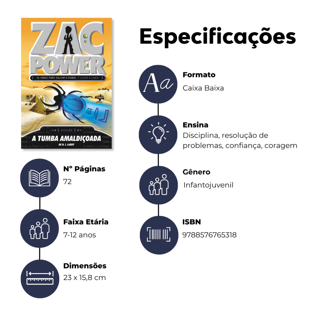 Com mais de 3 milhões de livros vendidos, Zac Power é a série perfeita para meninos a partir de 7 anos que adoram ação, mistério e aventura! Uma leitura envolvente que já conquistou crianças no mundo todo — e que promete afastar seu filho das telas, aproximando-o do universo dos livros.